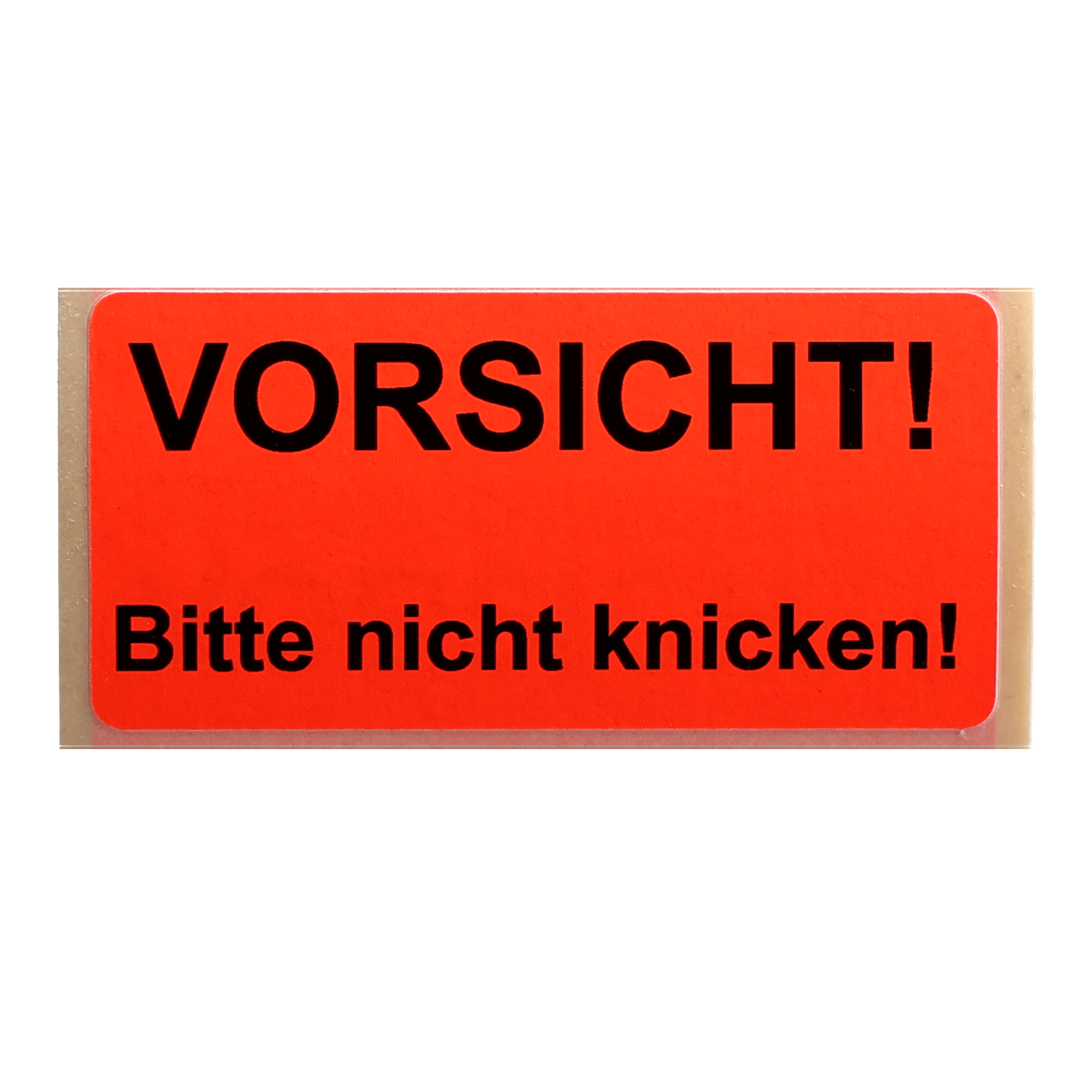 Versandaufkleber Vorsicht - bitte nicht knicken auf selbstklebendem Papieretikett. Wahlweise in den Farben leuchtrot, leuchtgelb, leuchtgrün oder weiß. Die Signalfarben unserer Versandaufkleber stechen sofort ins Auge.