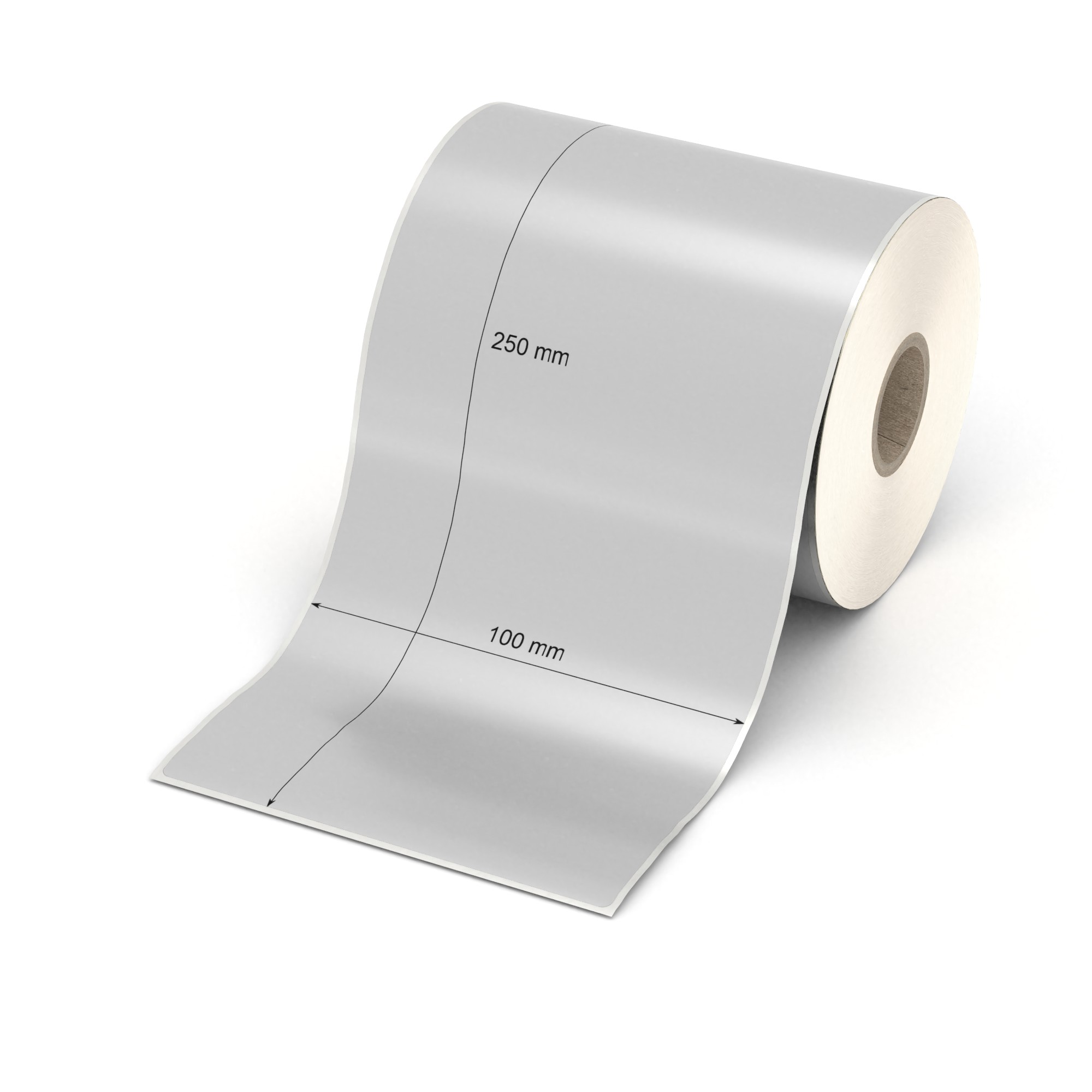 Etikett 100 x 250 mm - Polyester silbern permanent - 150 Etiketten pro Rolle - 25 mm Hülse