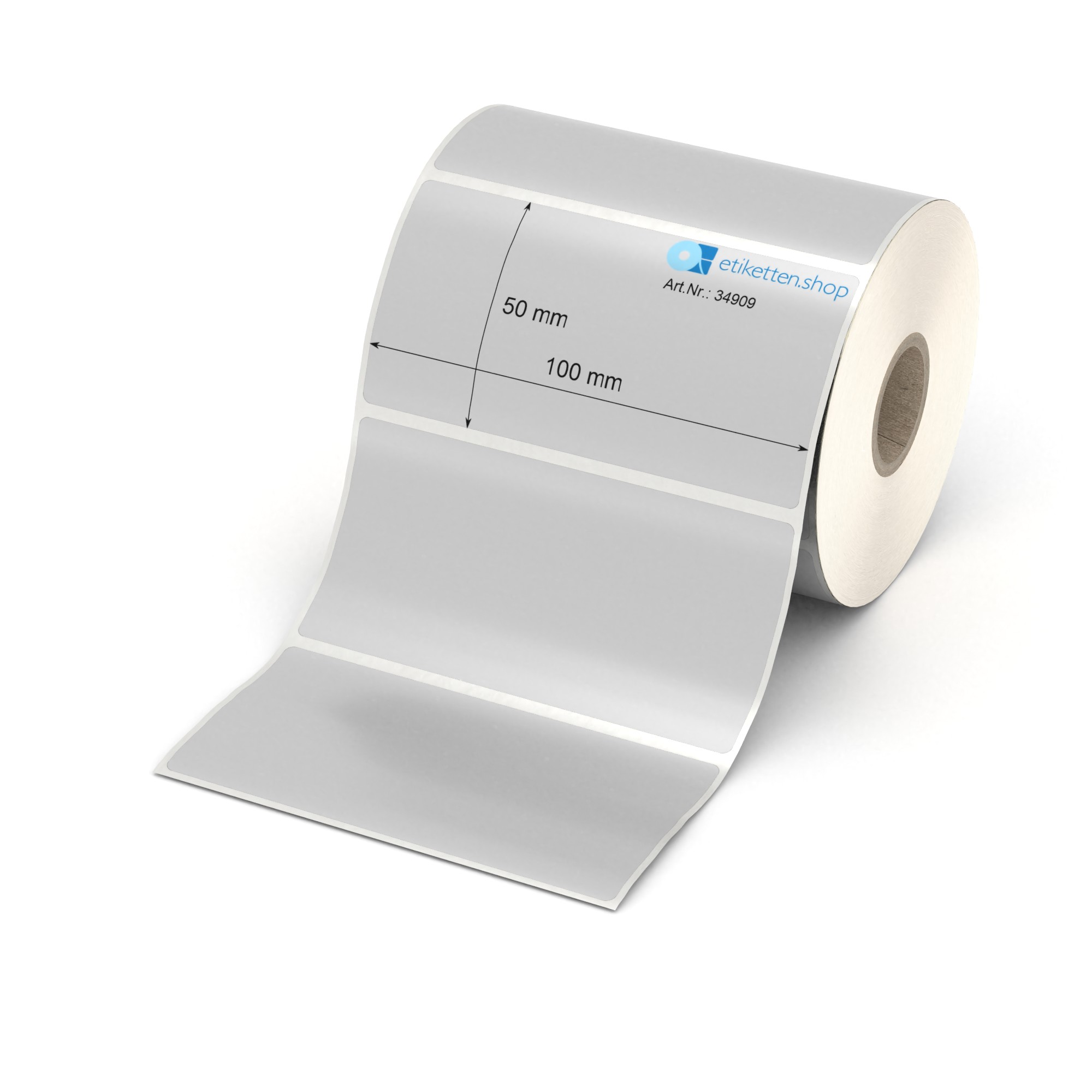 Etikett 100 x 50 mm - Polyester silbern permanent - 700 Etiketten pro Rolle - 25 mm Hülse