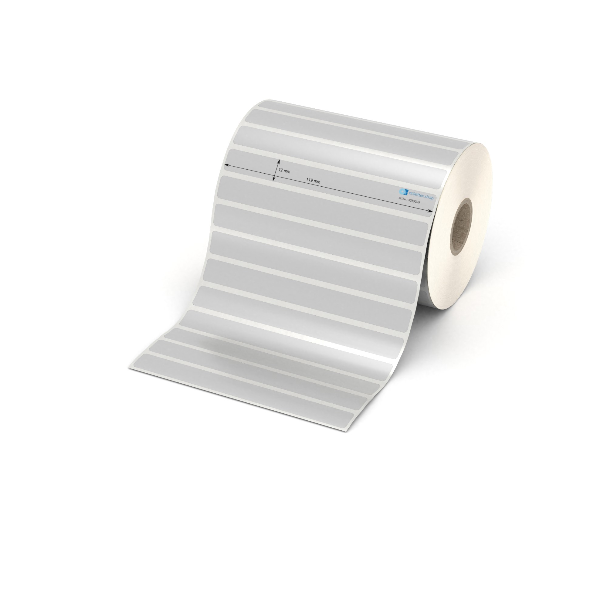 Etikett 119 x 12 mm - Polyester silbern permanent - 2600 Etiketten pro Rolle - 25 mm Hülse