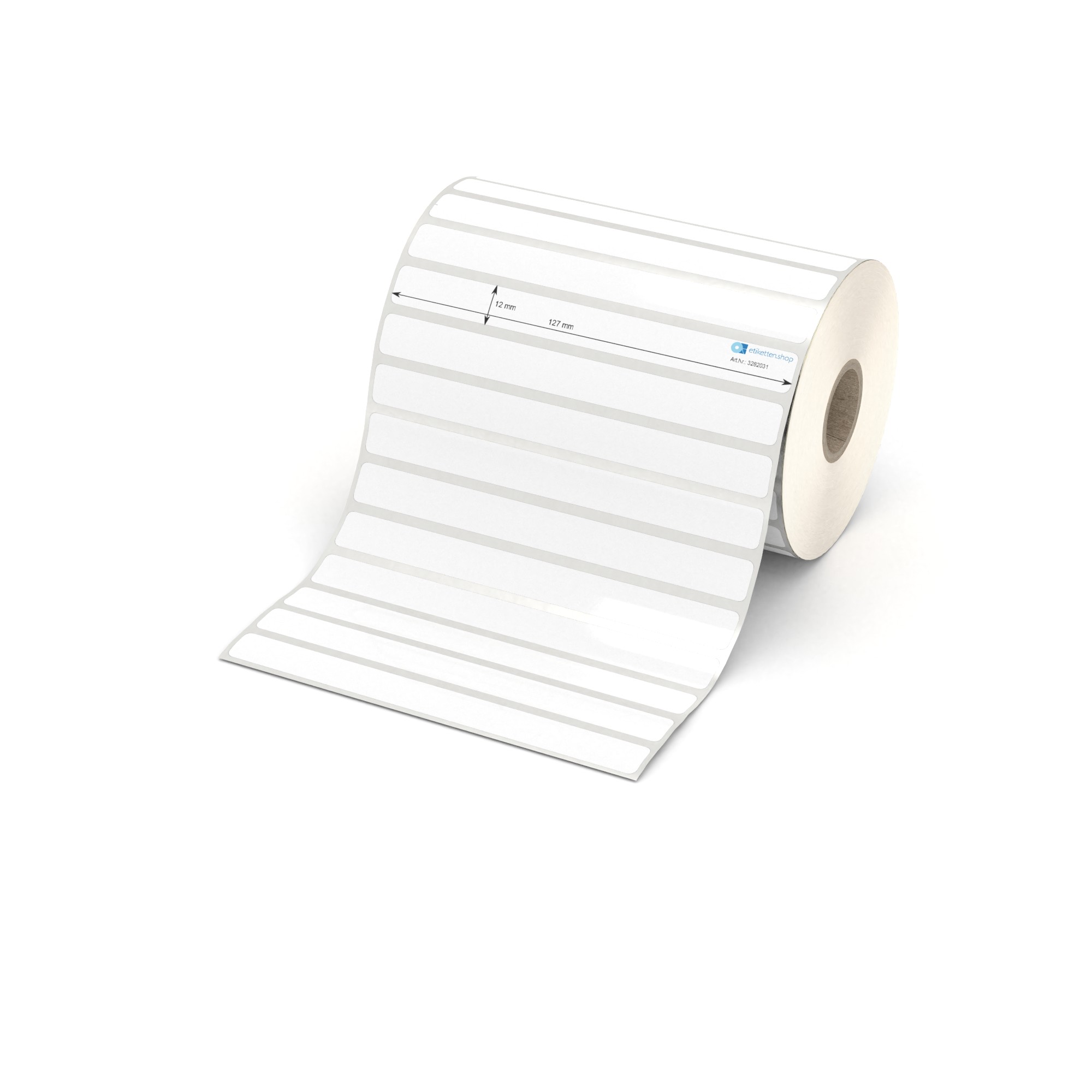 Etikett 127 x 12 mm - Polyester weiß permanent - 2600 Etiketten pro Rolle - 25 mm Hülse
