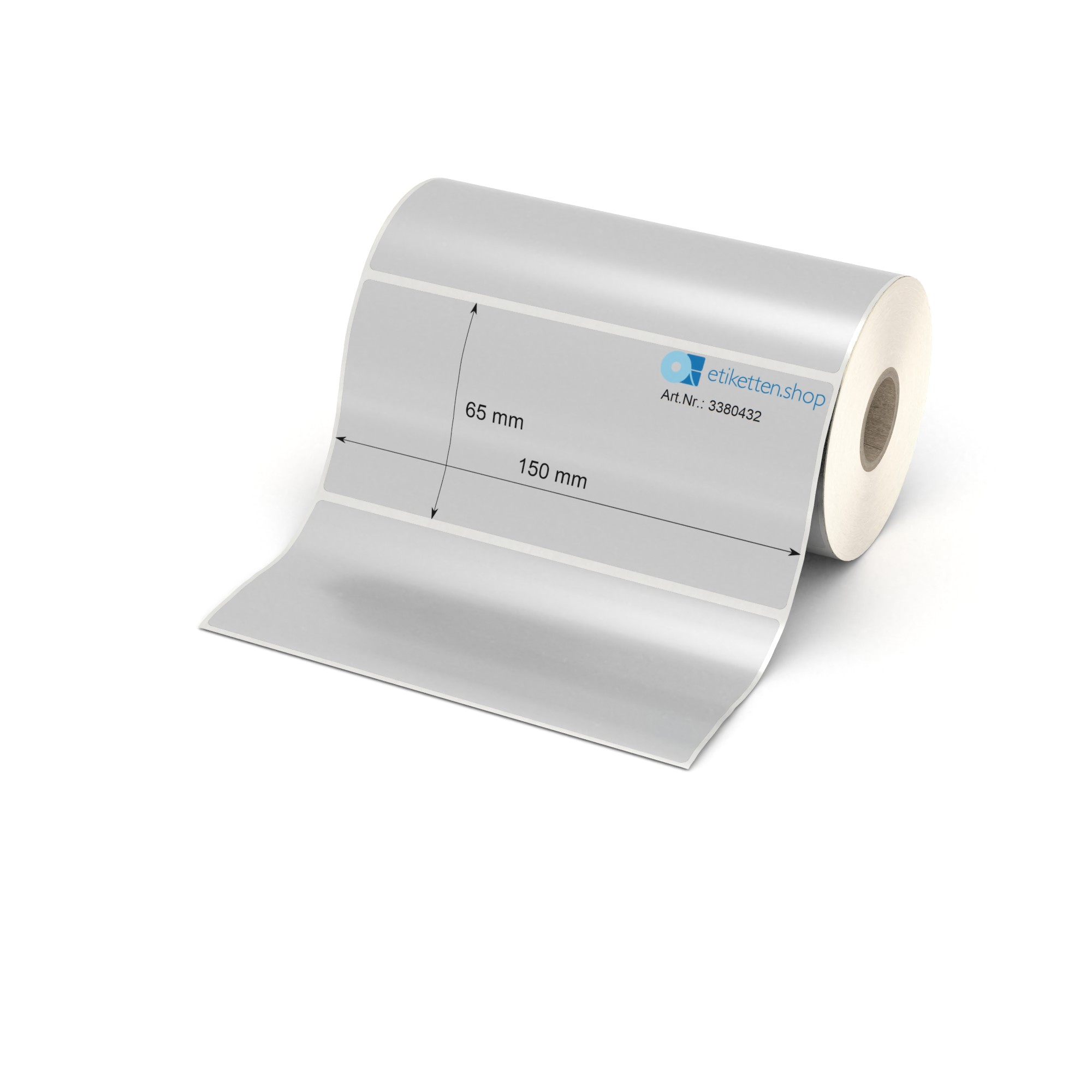 Etikett 150 x 65 mm - Polyester silbern permanent - 500 Etiketten pro Rolle - 25 mm Hülse