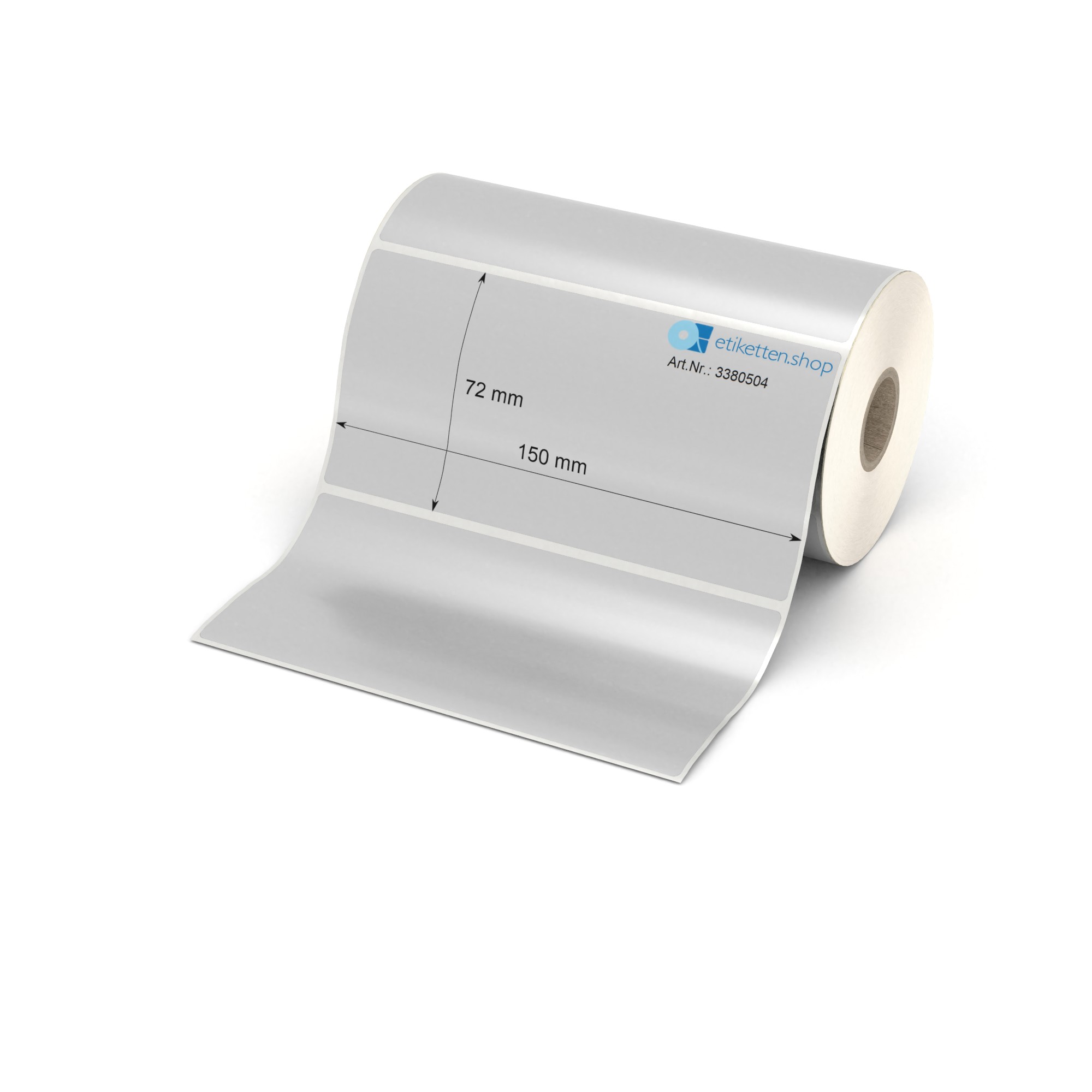 Etikett 150 x 72 mm - Polyester silbern permanent - 500 Etiketten pro Rolle - 25 mm Hülse