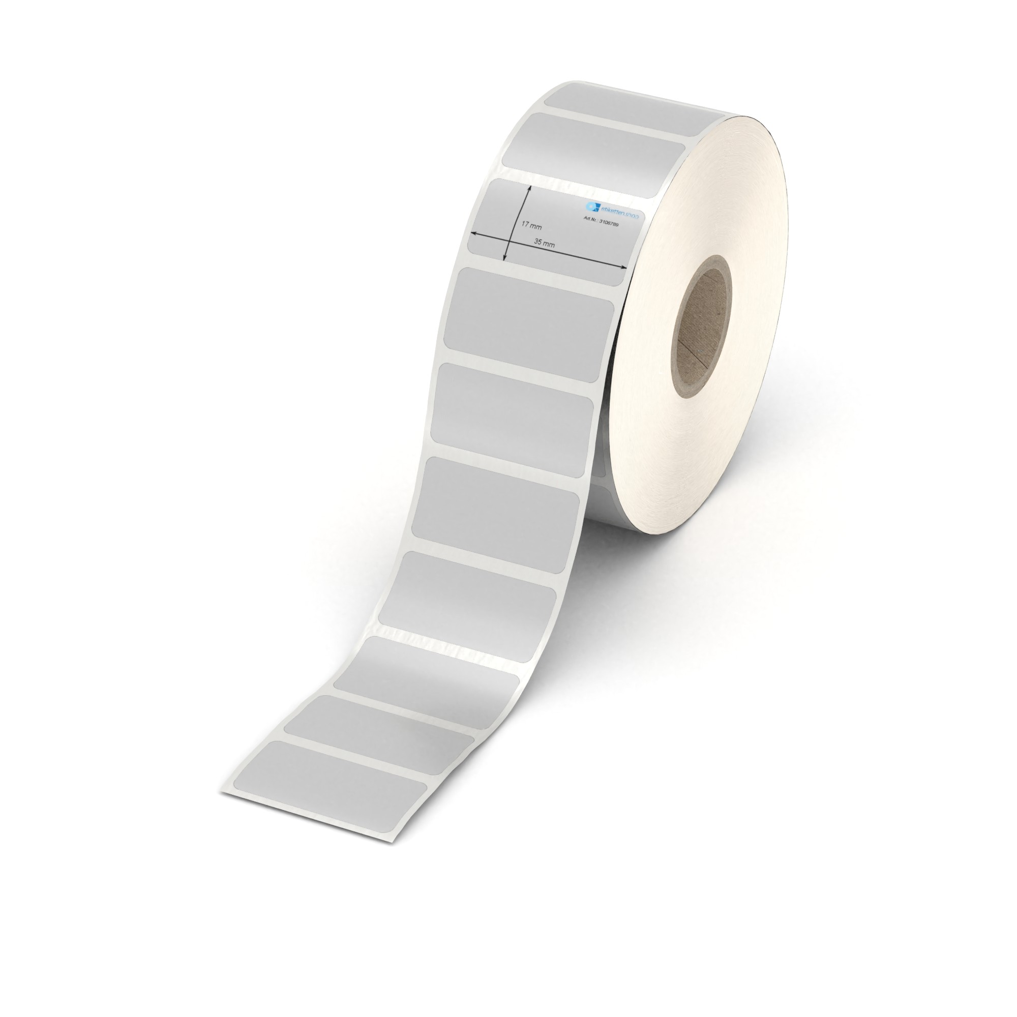 Etikett 35 x 17 mm - Polyester silbern permanent - 2000 Etiketten pro Rolle - 25 mm Hülse