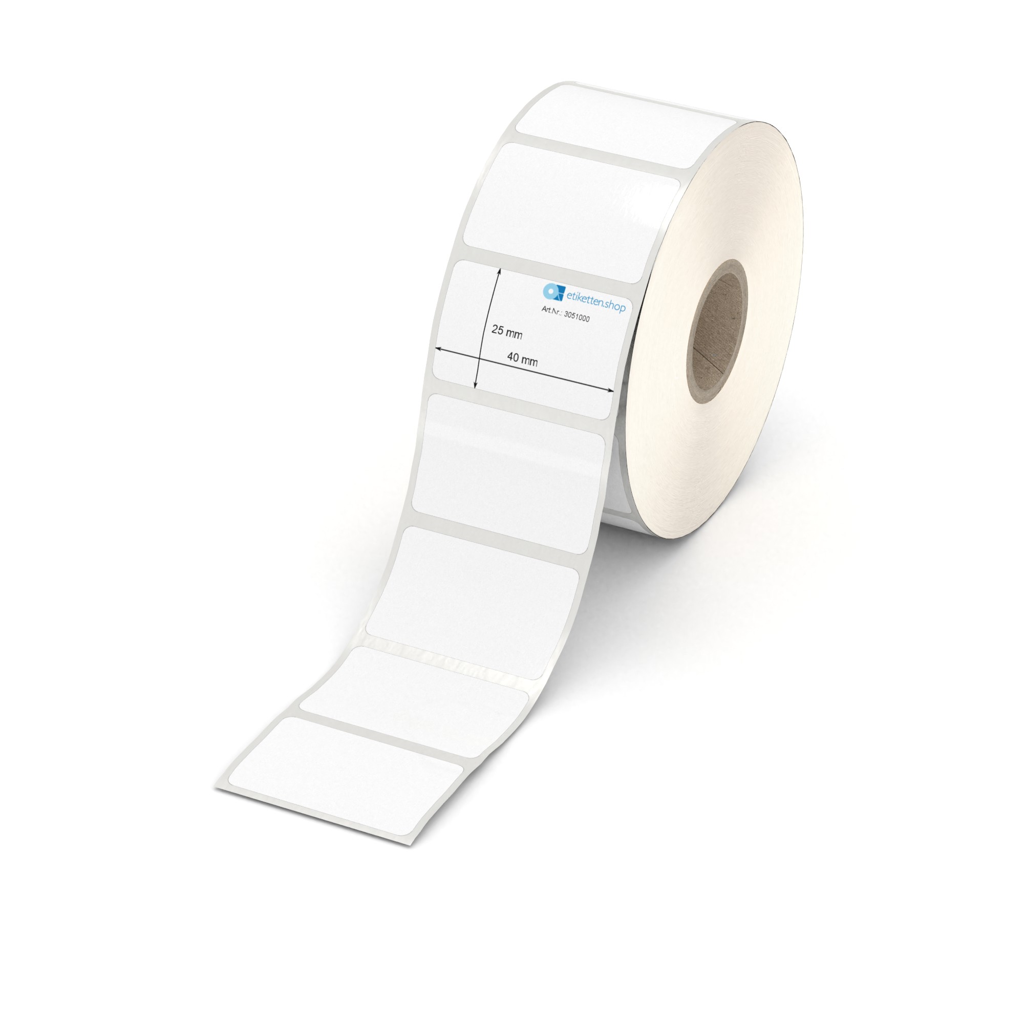 Etikett 40 x 25 mm - Polyester weiß permanent - 1400 Etiketten pro Rolle - 25 mm Hülse