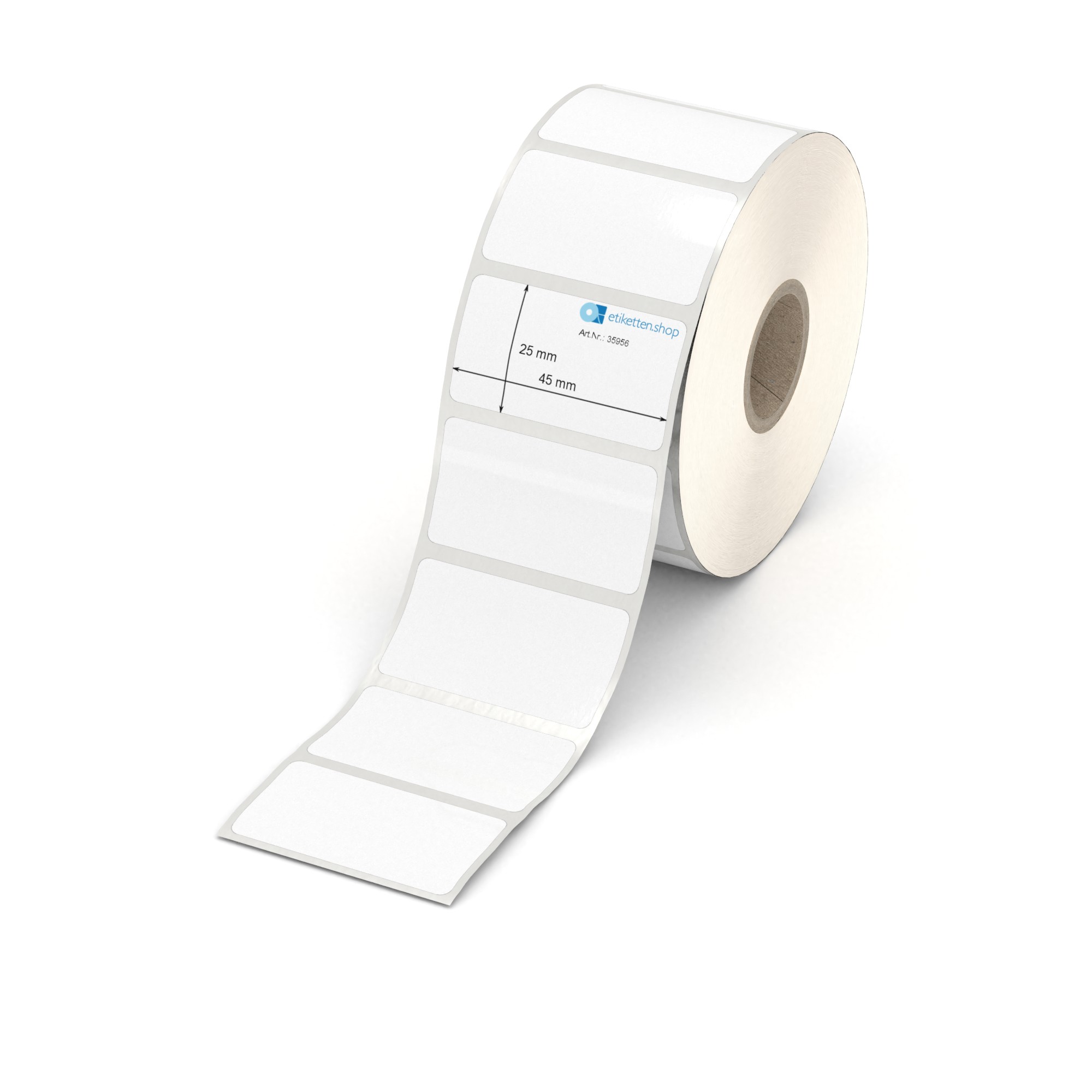 Etikett 45 x 25 mm - Polyester weiß permanent - 1400 Etiketten pro Rolle - 25 mm Hülse