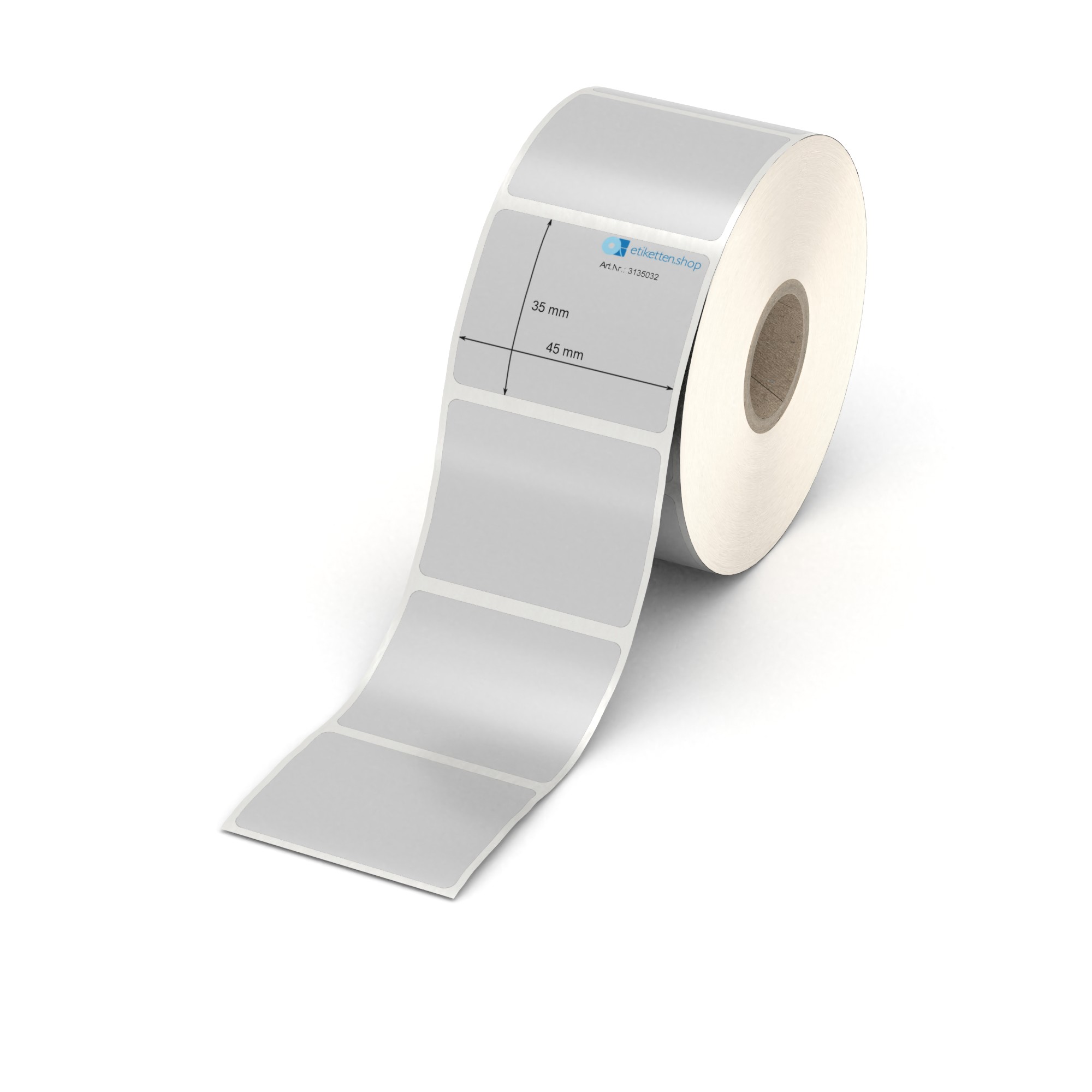 Etikett 45 x 35 mm - Polyester silbern permanent - 1000 Etiketten pro Rolle - 25 mm Hülse