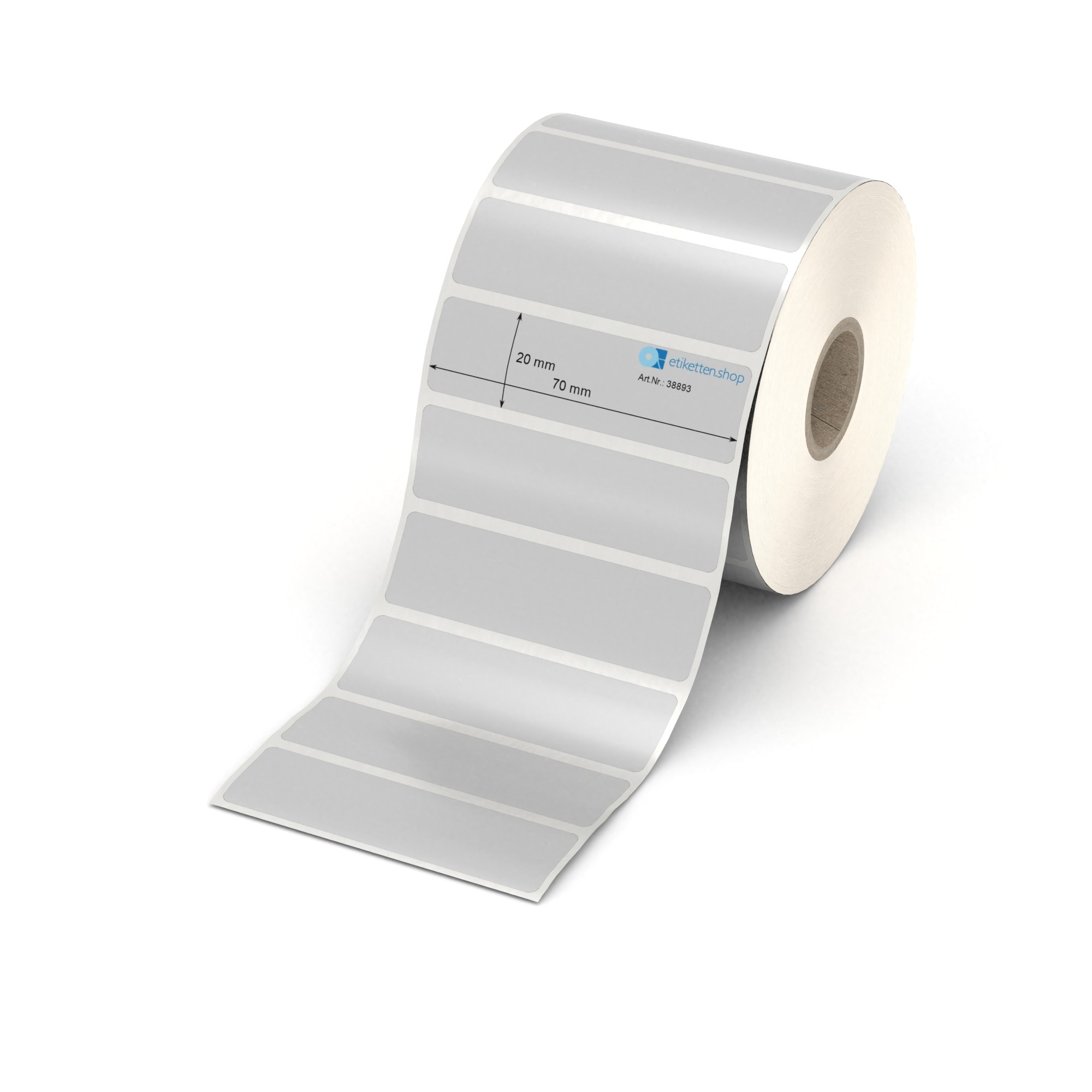 Etikett 70 x 20 mm - Polyester silbern permanent - 1700 Etiketten pro Rolle - 25 mm Hülse