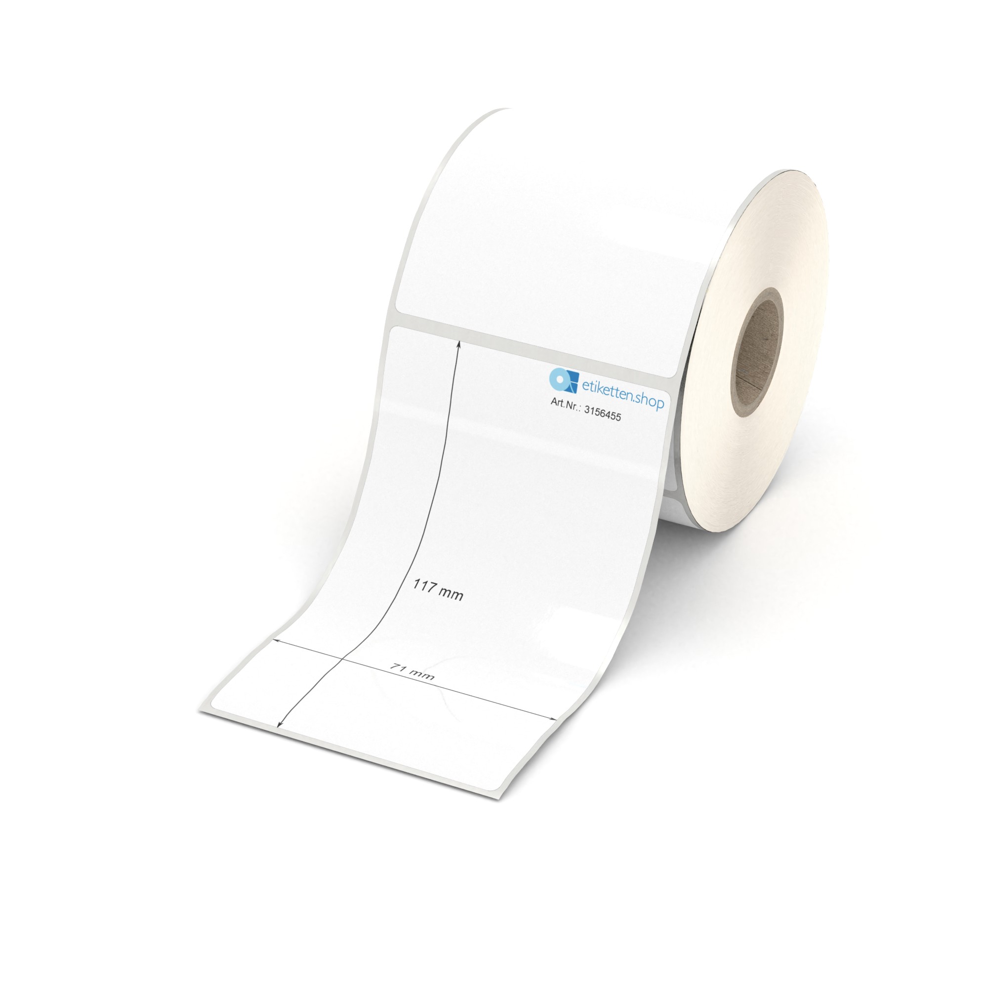 Etikett 71 x 117 mm - Polyester weiß permanent - 300 Etiketten pro Rolle - 25 mm Hülse