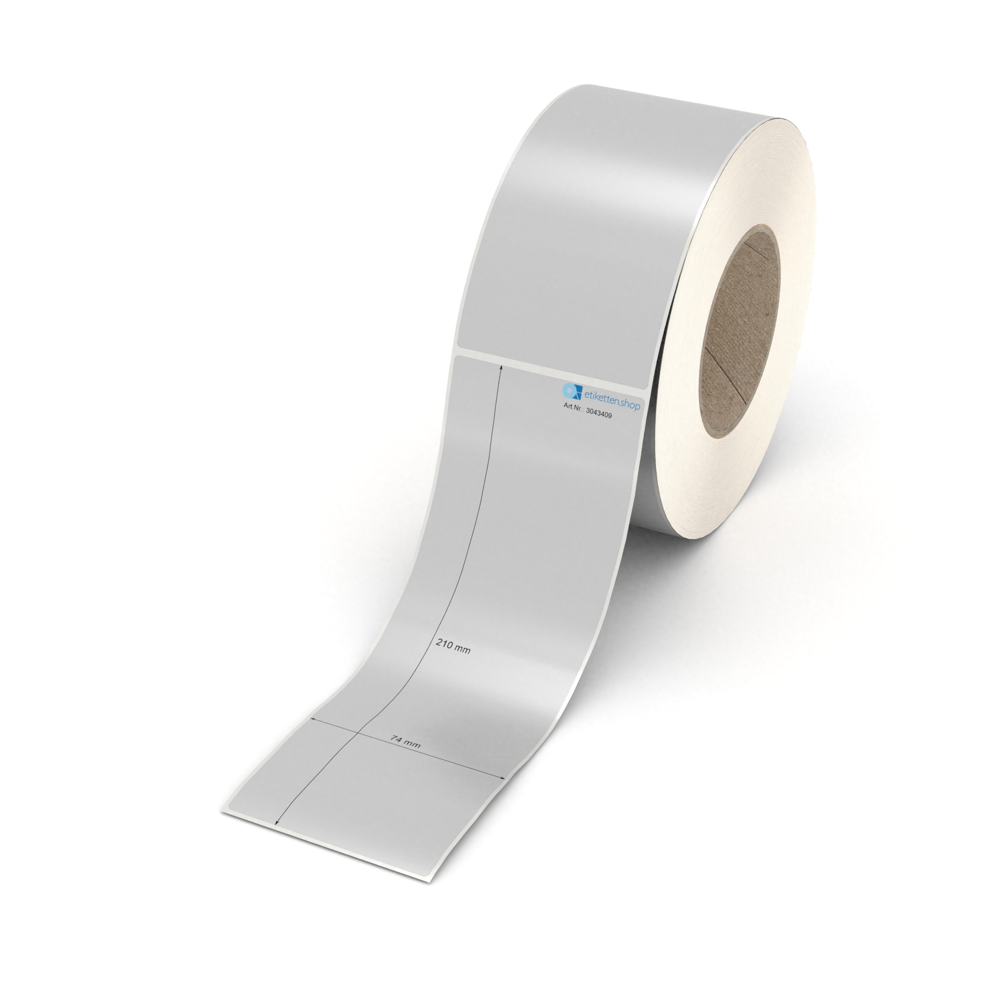 Etikett 74 x 210 mm - Polyester silbern permanent - 500 Etiketten pro Rolle - 76 mm Hülse