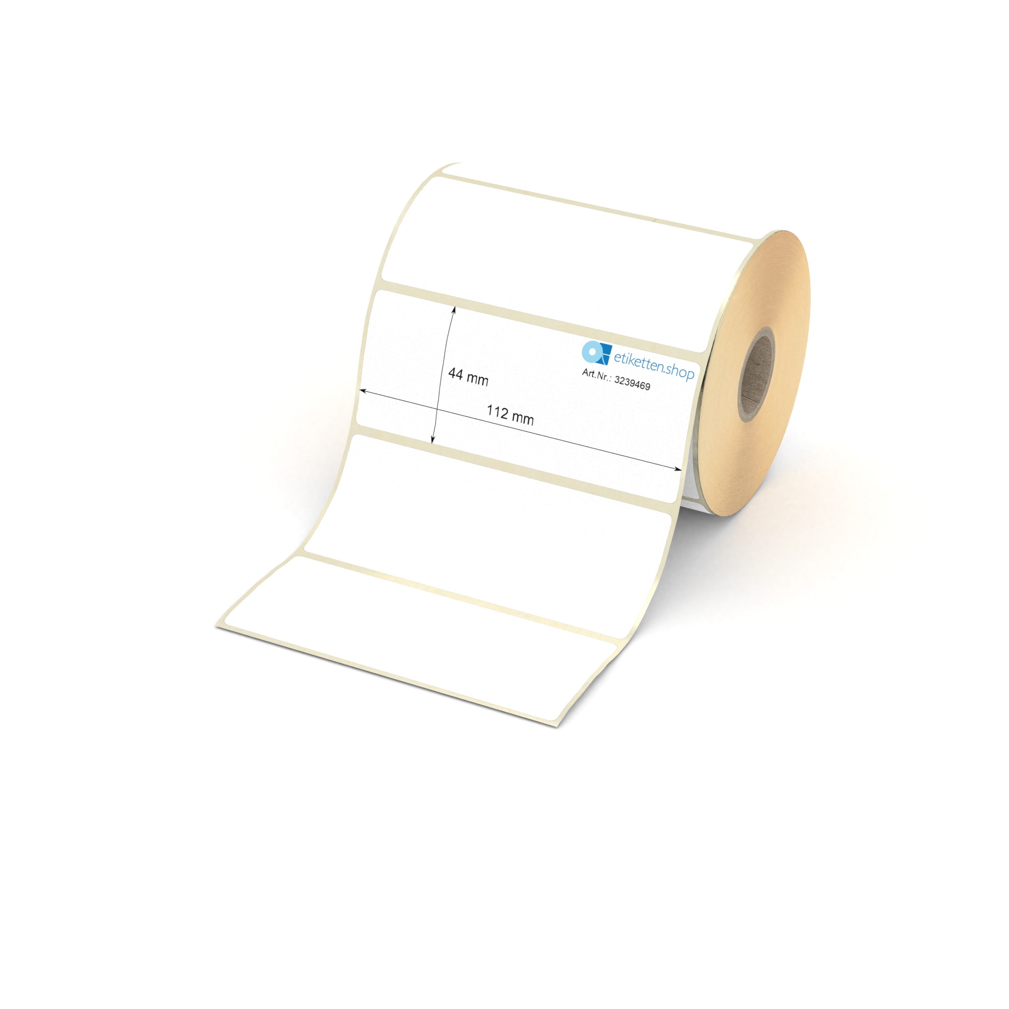 Etikett 112 x 44 mm - Thermopapier weiß leicht ablösbar - 800 Etiketten pro Rolle - 25 mm Hülse