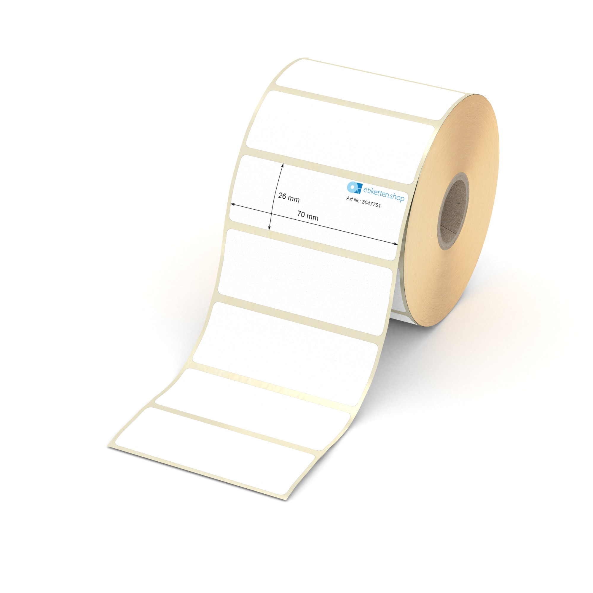Etikett 70 x 26 mm - Thermopapier weiß leicht ablösbar - 1300 Etiketten pro Rolle - 25 mm Hülse