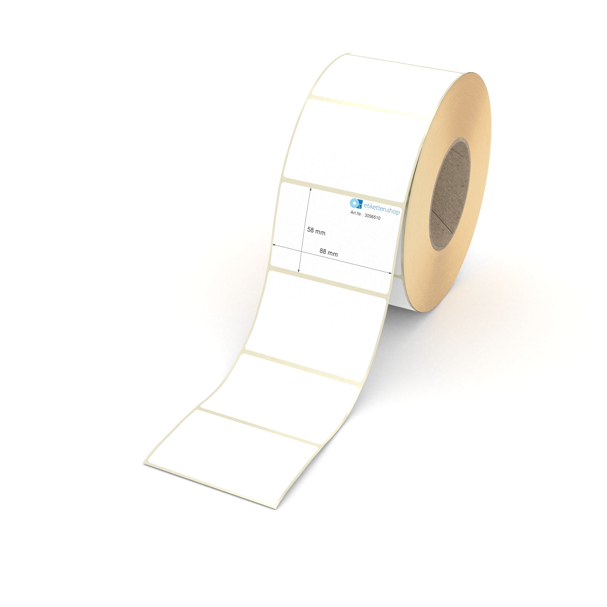 Etikett 88 x 58 mm - Thermopapier weiß permanent - 1900 Etiketten pro Rolle - 76 mm Hülse