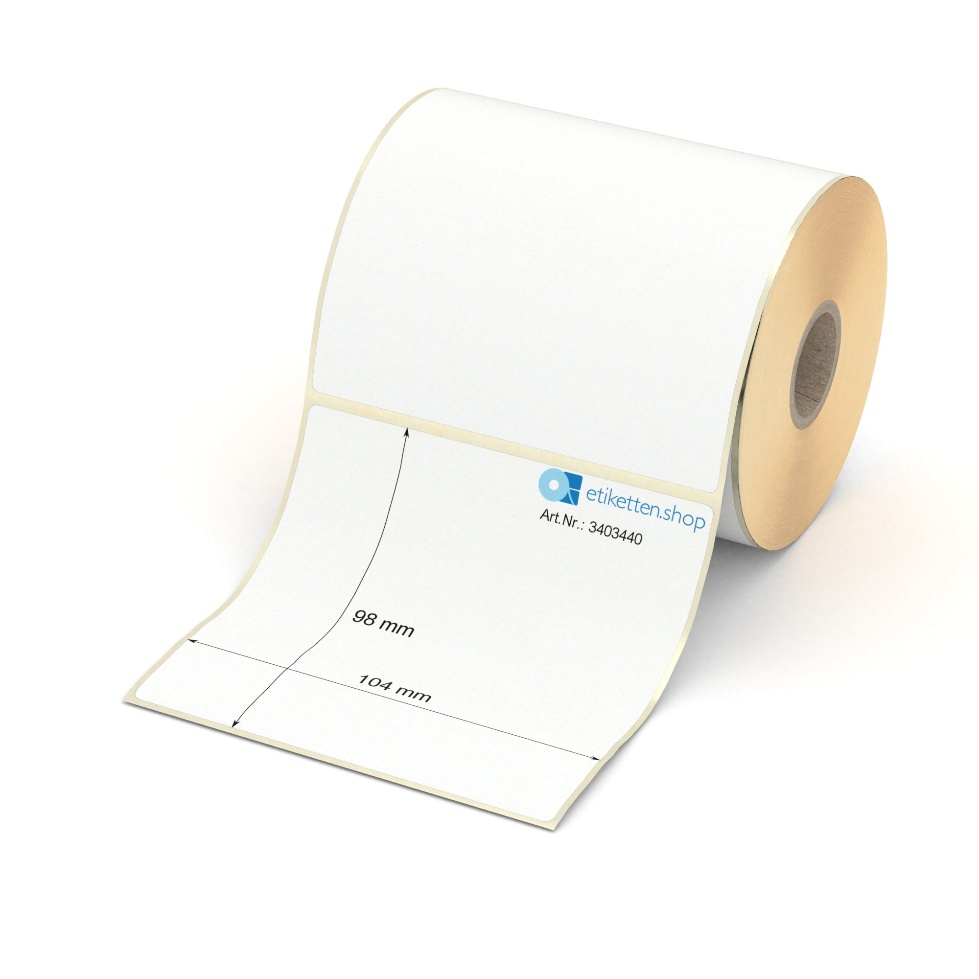 Etikett 104 x 98 mm - Transferpapier weiß leicht ablösbar - 350 Etiketten pro Rolle - 25 mm Hülse