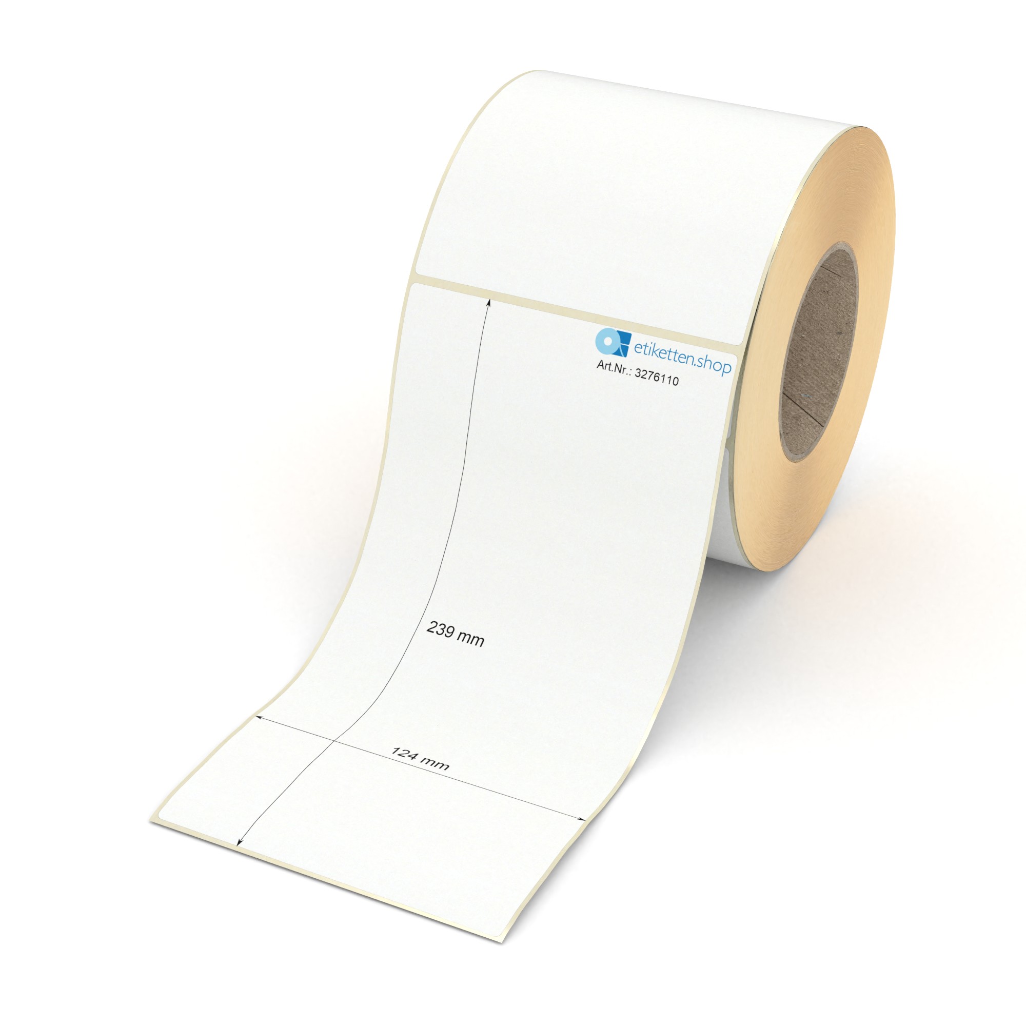 Etikett 124 x 239 mm - Transferpapier weiß permanent - 450 Etiketten pro Rolle - 76 mm Hülse