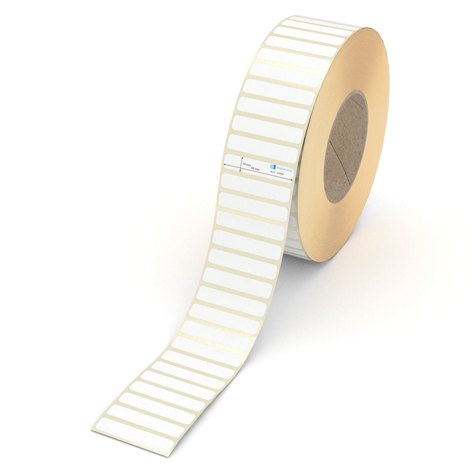 Etikett 50 x 10 mm - Transferpapier weiß permanent - 9000 Etiketten pro Rolle - 76 mm Hülse