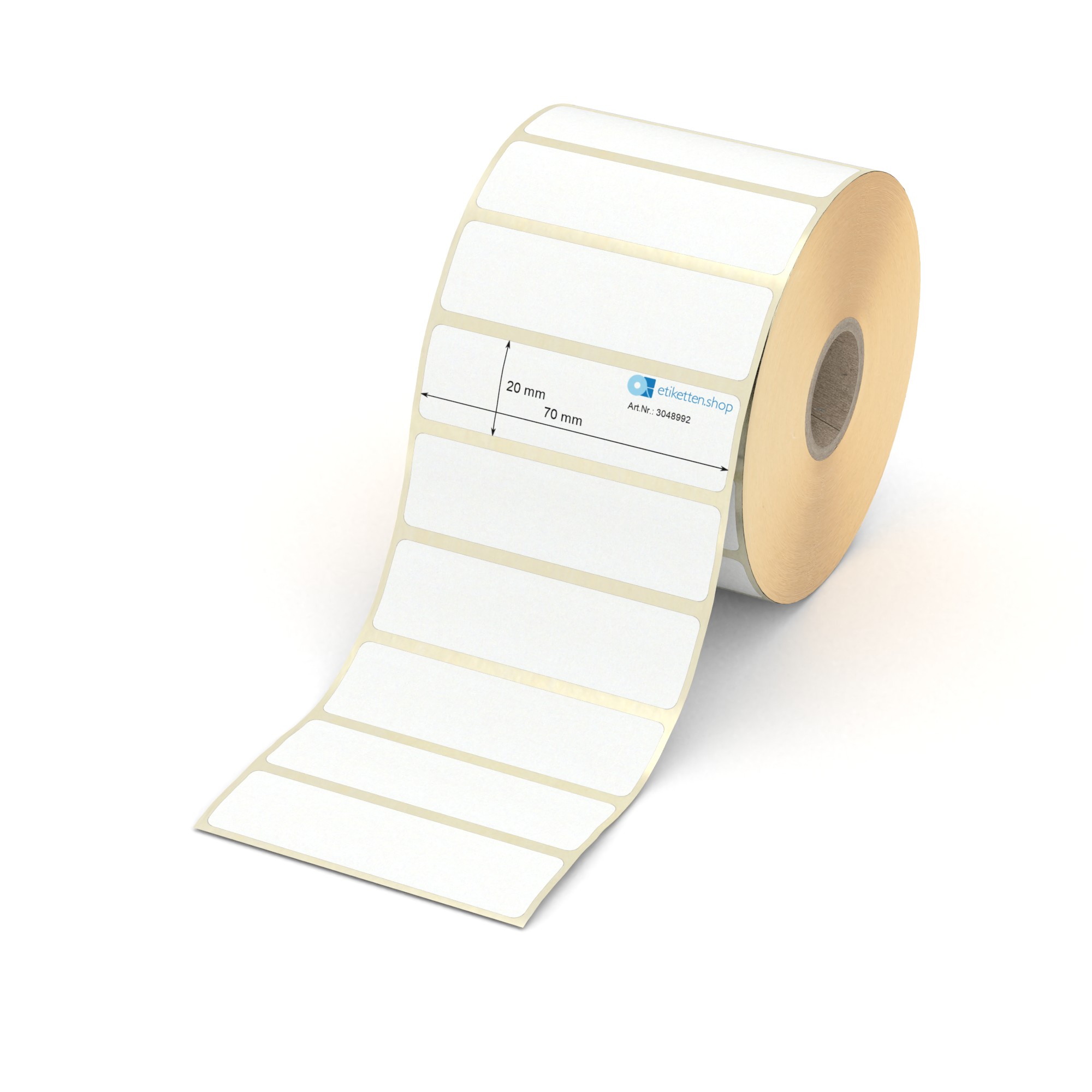 Etikett 70 x 20 mm - Transferpapier weiß leicht ablösbar - 1700 Etiketten pro Rolle - 25 mm Hülse