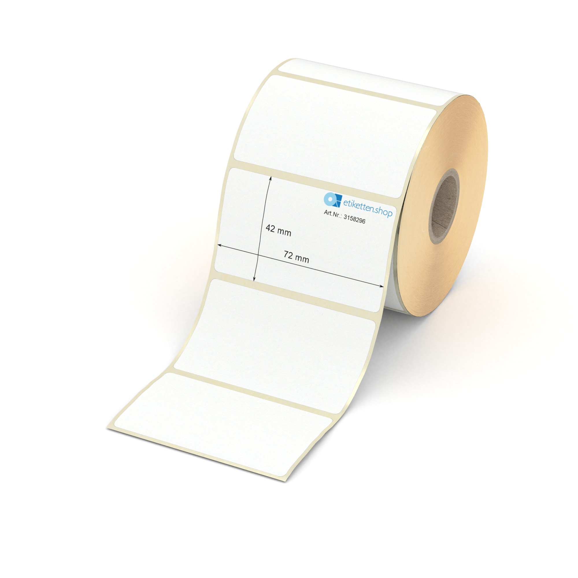 Etikett 72 x 42 mm - Transferpapier weiß leicht ablösbar - 800 Etiketten pro Rolle - 25 mm Hülse