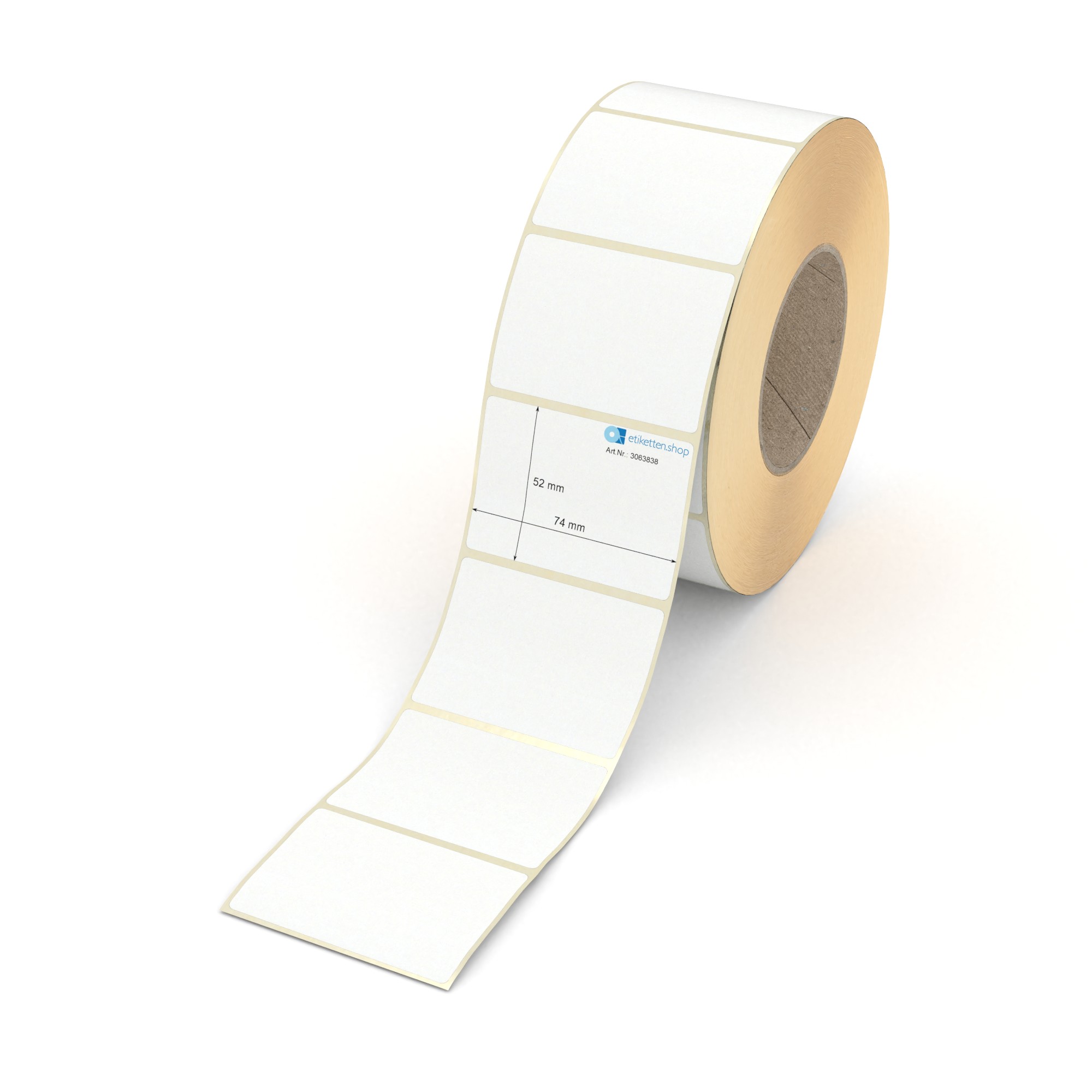Etikett 74 x 52 mm - Transferpapier weiß permanent - 2100 Etiketten pro Rolle - 76 mm Hülse