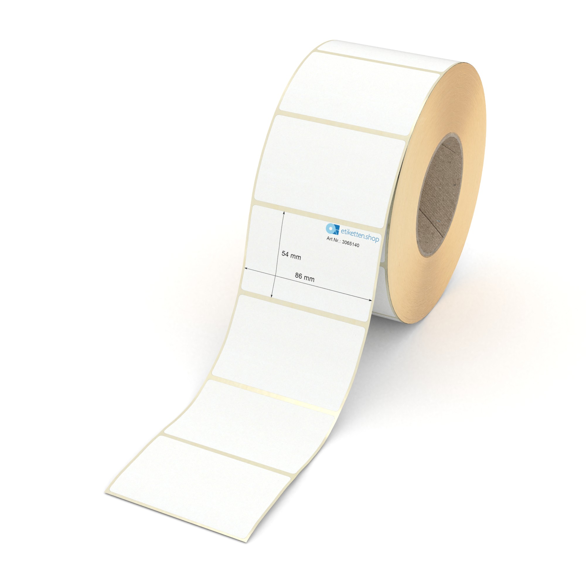 Etikett 86 x 54 mm - Transferpapier weiß permanent - 2100 Etiketten pro Rolle - 76 mm Hülse